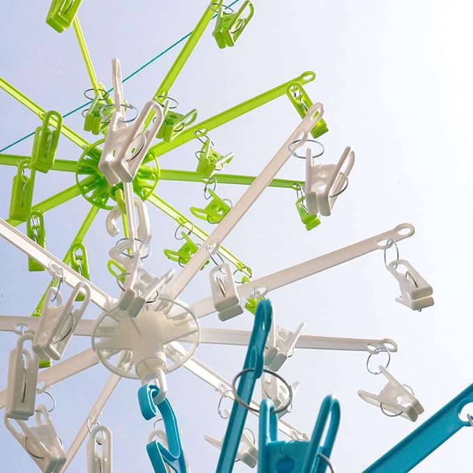 • 20 CLIPS: Clothes rack drying laundry has 20 individual firm grip clothespin pegs, perfect sock dryer, underwear rack or for clothes and baby sock laundry hanger drying rack