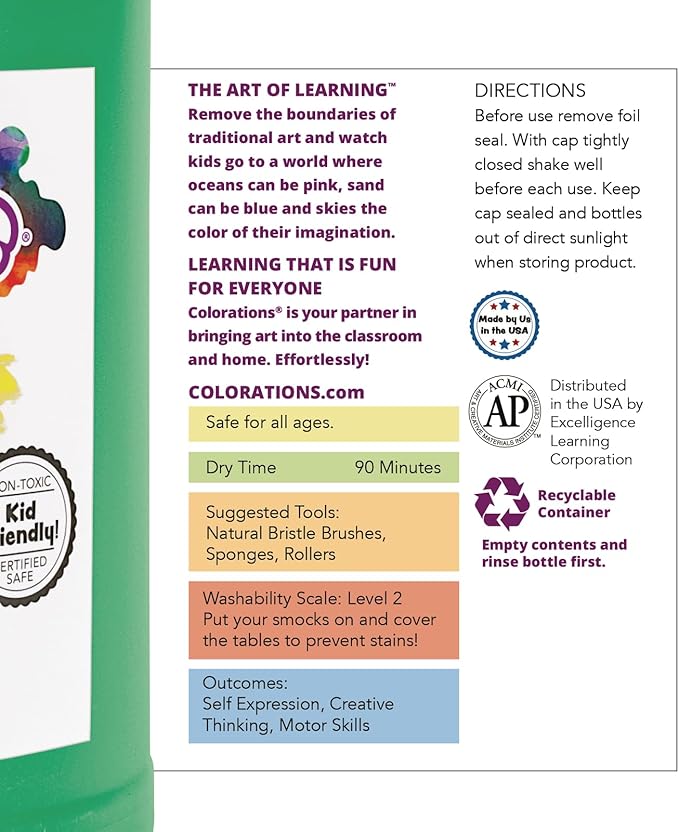 • Ideal For Art Rooms: Creamy, easy-to-spread paints are the perfect addition to art rooms and creative supply cabinets. Stock up on large bottles of tempera so students have plenty for their projects.