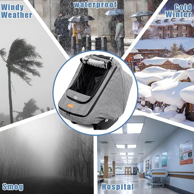 • 【 Weather Proof Shell】The Baby Car Seat Cover Made With High-Quality, Windproof and Water Resistant Shell Protects Your Baby From Rain,Snow,and Wind, Universal Baby Car Seat Cover Is a Must-Have Item For Parents To Travel With Their Babies And Give Them The Best Care In a Safe Environment.Baby Car Seat Covers Are The Perfect Accessory For Travel With Your Little One.