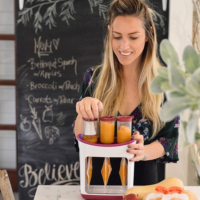 • EFFORTLESS PUREE PREPARATION: Simplify your baby food routine with this all-in-one baby food maker and squeeze pouch system. Designed to help parents store pure, homemade blends with less mess and more control