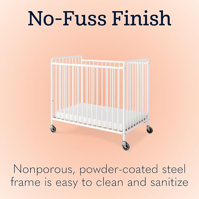 • Space-Saving Metal Crib – Compact design is ideal for making the most of your space in childcare settings, hotels, or vacation rentals