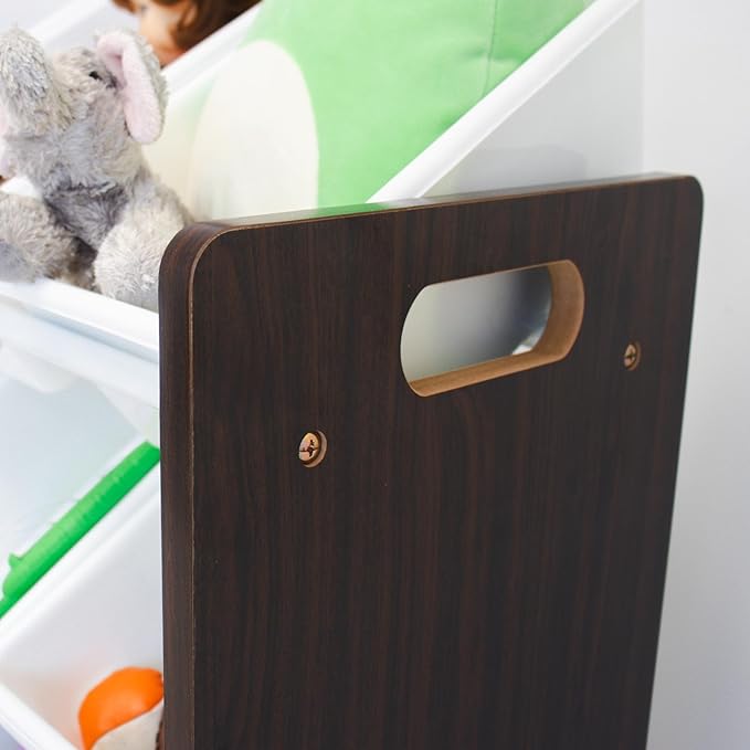 • Durable & Safe Construction – Sturdy engineered wood frame with steel dowels ensures long-lasting strength and stability; bins are BPA- and phthalate-free for added safety.