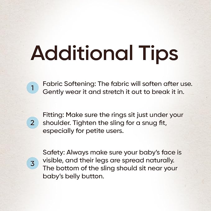 • EASY MAINTENANCE: Machine wash in cold water and line dry to keep your sling wrap baby carrier in great condition. Due to dyes, slight bleeding may occur in initial washes. Regularly check for wear and tear on this baby sling carrier newborn for a secure fit.