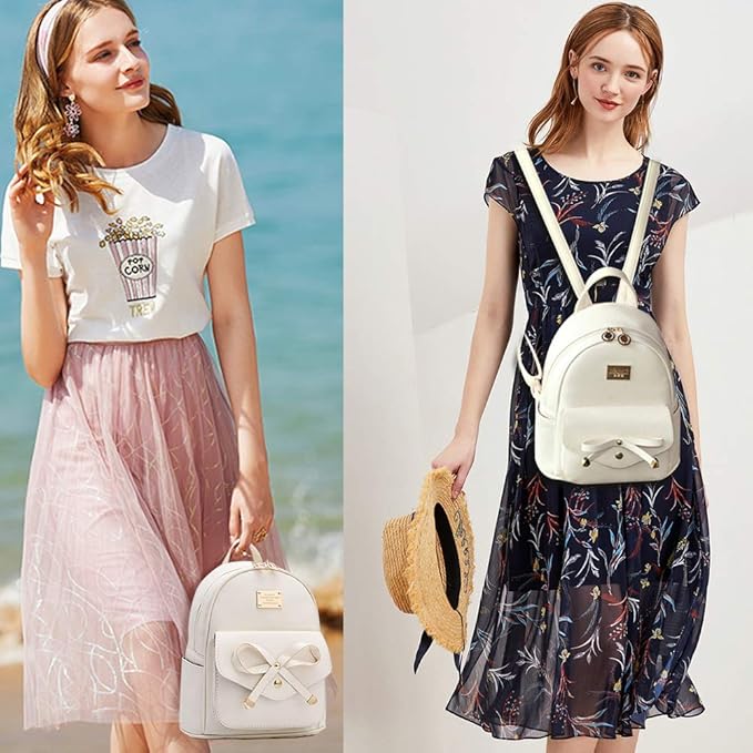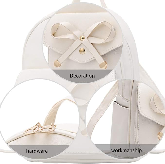 • Cute Backpack for Teen Girls: it's a great gift for also girls and women. Mini size and bowknot decor make you look chic and fashion.