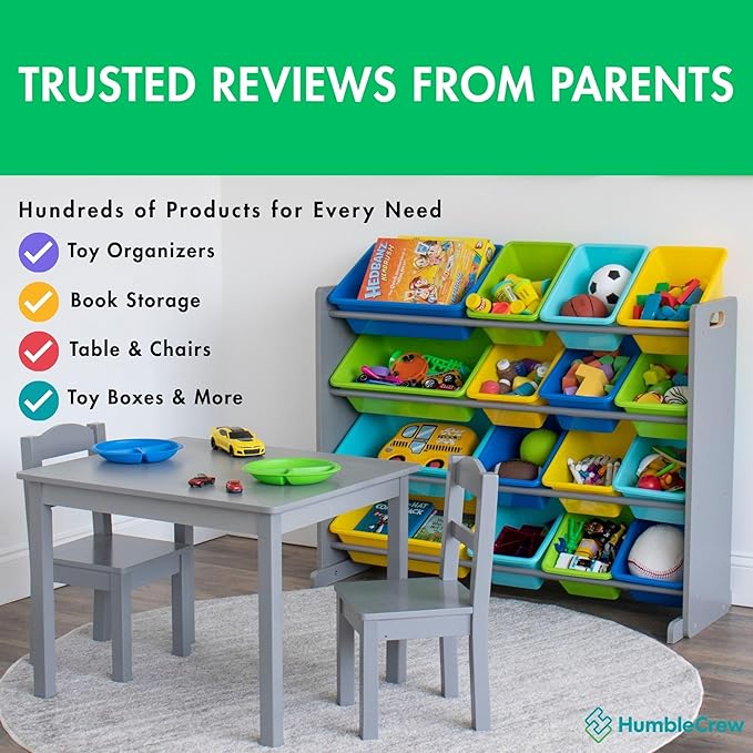 Humble Crew Supersized Toy Storage Organizer with 16 Removable Bins, Grey/Blue/Green/Yellow – Large Toy Storage for Toddlers Ideal for Kids' Rooms, Playrooms, and Nurseries - Modern Toy Bins for Kids