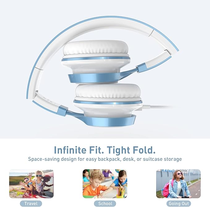 • Lightweight and Foldable: At only 6 oz, these headphones are light and foldable, making them perfect for travel, school, and other on-the-go activities.