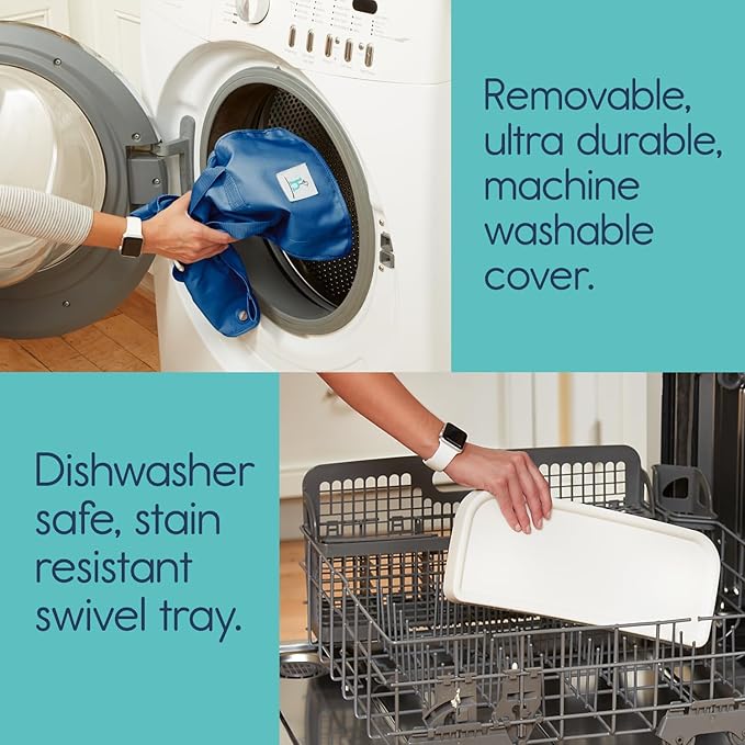 • MACHINE WASHABLE COVER | We all know that babies are messy eaters! Our portable booster seat is designed to effortlessly wipe clean, allowing more quality time with your precious tot. To assist with the inevitable mess, the fabric cover slides off the frame for machine washing - a must have for sanitizing and spaghetti stain removal.