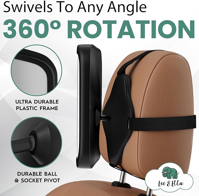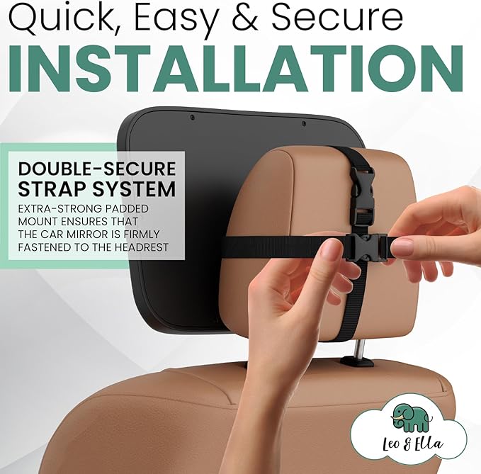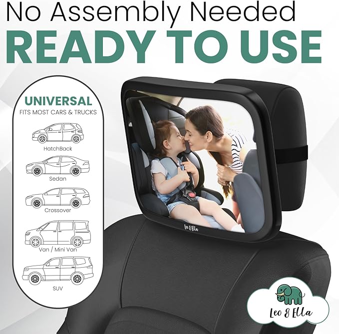 Leo and Ella - Baby Car Mirror - Extra Large & Ultra Clear Infant View, Crash Tested Shatterproof Design w/ 360Β° Adjustable Mount, Premium Car Mirror For Baby