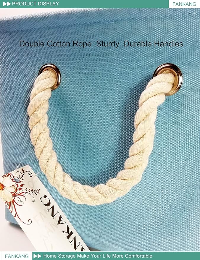 • Easy to carry: The lightweight canvas storage bins with handles allow you to carry your load easier. Wire-rimmed edges add form and stability. Help your kids clean up their act with our cute storage bins..