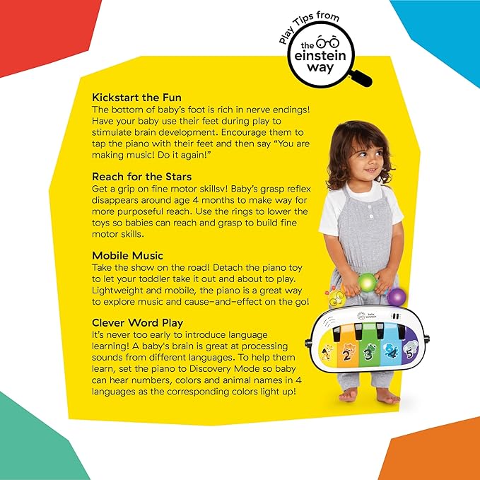 • Includes expert-developed Einstein Way Play Tips to inspire curiosity and foster purposeful parent-baby playtime.