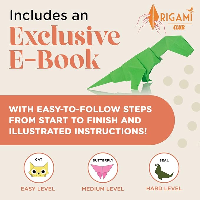• Learn with our tutorials - Starting out on this hobby? We've got you covered! Your package comes with a link to our exclusive online video course that helps you learn more about creating masterpieces with our origami paper kit. Our DIY origami tutorial teaches you how to make simple patterns that even young ones can do on their own, with little to no guidance from grownups. It also features advanced patterns for the origami paper folding masters. Challenge yourself and excel in this craft!