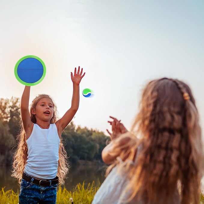 • 【Softer and High-quality Ball Set】The old version's tennis balls were very hard and lacked elasticity, making them difficult for kids to catch. Our balls are much stronger and softer, yet still have great stickiness, so kids can easily catch them and enjoy a comfortable feel. Kids won't lose their fun because they can keep catching the ball. This ball game is always lots of fun for little ones, even at family reunions.