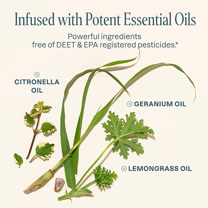 • DEET-Free & Powered By Essential Oils – Active ingredients derived from plants without registered pesticides