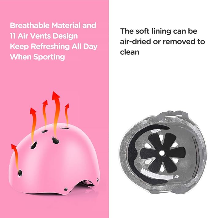 • Wonderful Material -- Our kids safety gear is adopted anti-scratch high hardness PVC shell padded with Soft EVA material. Those high-quality liners are not only durable for many years, but also breathable. Adopted ventilate fabric to keep cool and clean while biking, riding, cycling and skateboarding