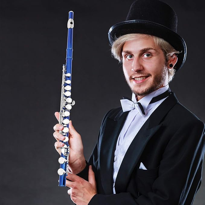 EASTROCK Closed Hole Flutes C 16 Key for Beginner, Kids, Student -Silver Nickel Flute with Case Stand and Cleaning kit (Blue)