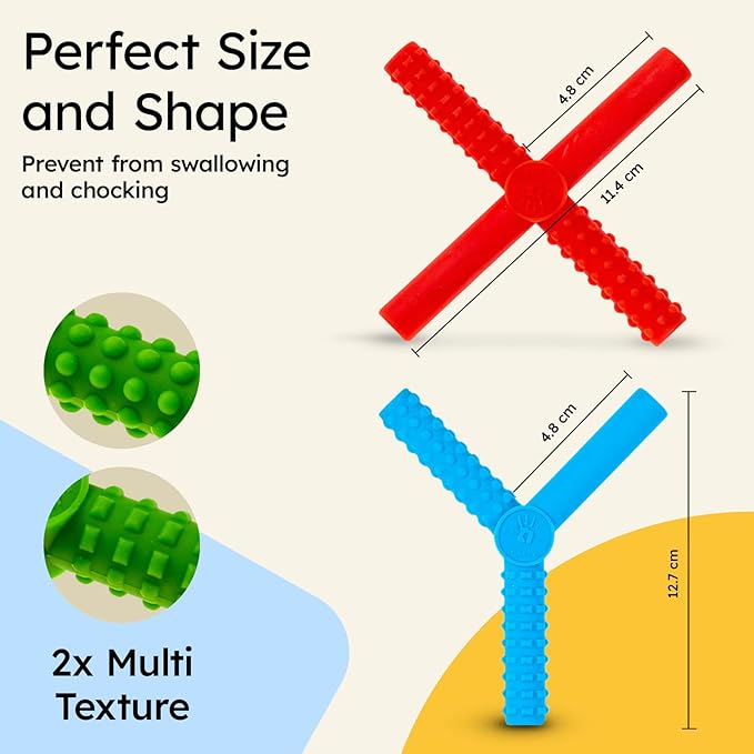 • REDUCES ANXIETY & PROMOTES CALM – These sensory chew toys provide a safe, effective way to manage stress and anxiety for children with autism, ADHD, and sensory processing needs. Designed to help kids stay focused and calm, these chewy sticks for sensory kids serve as an excellent alternative to chewing on fingers, clothing, or other non-safe items. Perfect for school, home, or travel, these chew toys for kids with autism encourage self-regulation and comfort.