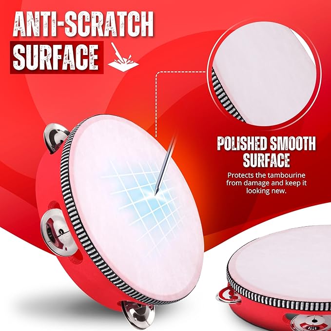 • Comfortable and Easy to Play: This small tambourine for kids features an ergonomic thumb hole for maximum comfort and rolled edges to ensure the jingles are not sharp. Thus, this set of tambourines is safe and ideal for musicians of all levels