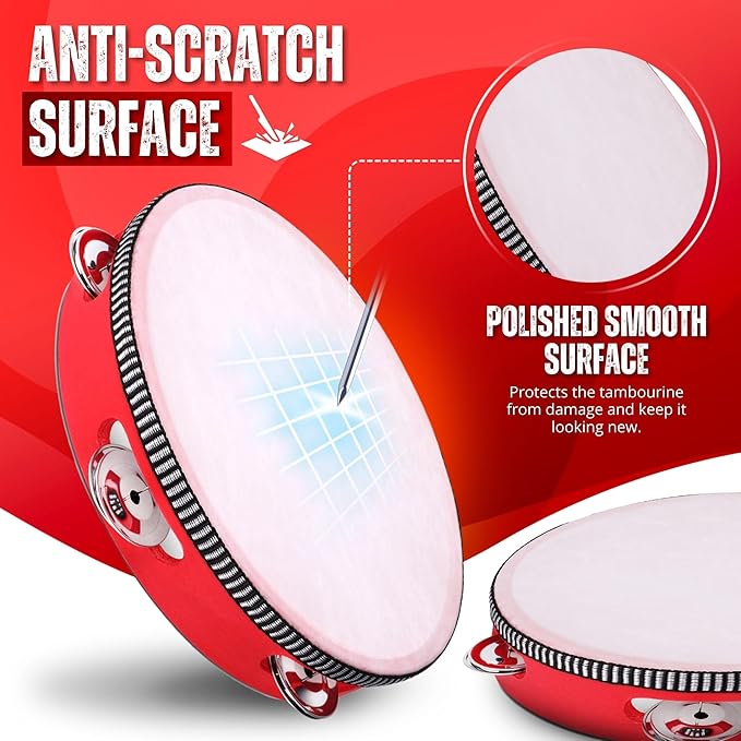 • Comfortable and Easy to Play: This small tambourine for kids features an ergonomic thumb hole for maximum comfort and rolled edges to ensure the jingles are not sharp. Thus, this set of tambourines is safe and ideal for musicians of all levels