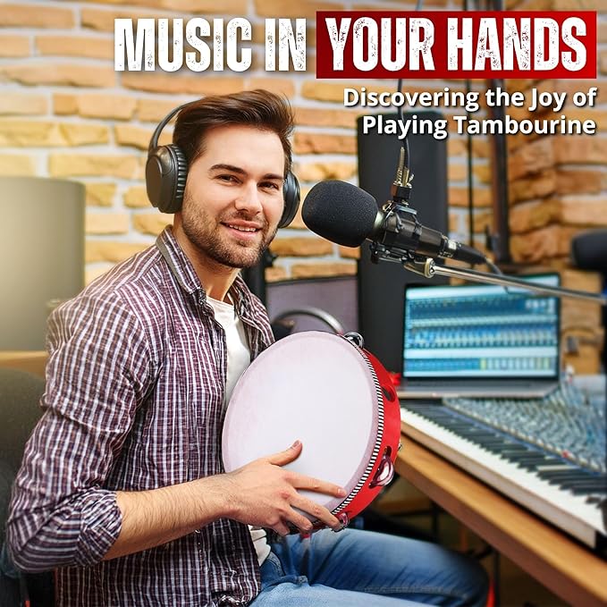 • Unmatched Quality: Crafted from high-quality wood and sturdy drum skin, this tambourine holds up to repeated use, making this tambourines musical instrument adult necessary for any musician or anyone fronting a band