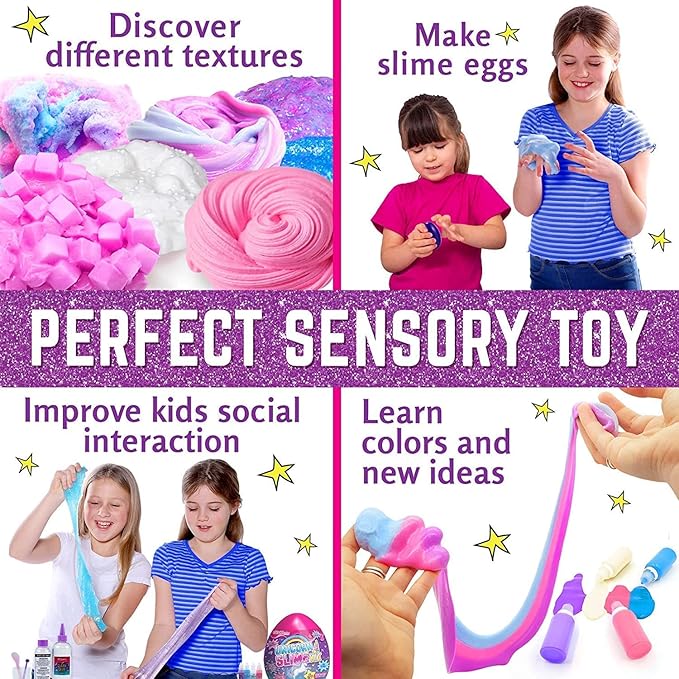 • Perfect for Imaginative Play: Discover endless fun with our slime kits for girls! An ideal sensory toy to explore different textures, learn new colors, and spark creativity by making your own slime eggs