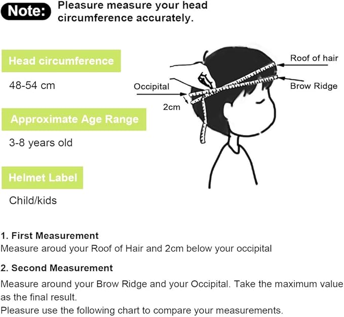• Kids Bike helmet: Suitable for 3-8 years old kids and toddlers with helmet size: 48-54 cm / 18.9-21.3". This kids bike helmet is easily adjustable for a snug fit, it could grow with your child for few years.