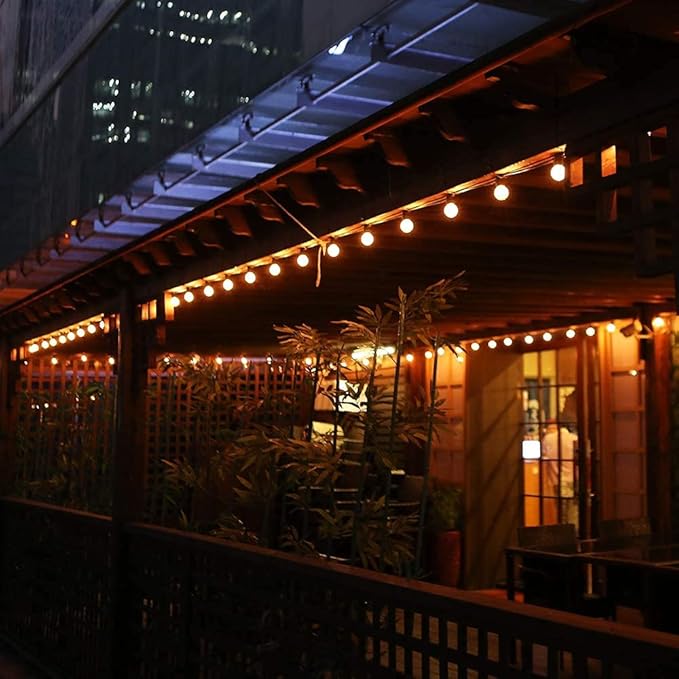 • ♝Outdoor string lights LED vintage bulbs glow natural warm light, perfect for Bistro, Backyard, Cafe, Gazebo, Weddings, Garden, Tents, Dinner Parties, Birthday Parties decor. G40 Patio String Lights create a romantic atmosphere that your can enjoying friendly time with you family and friends
