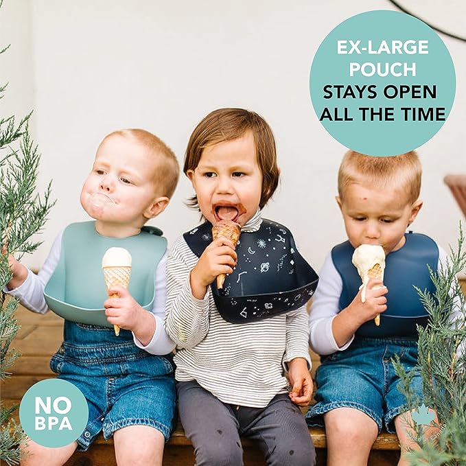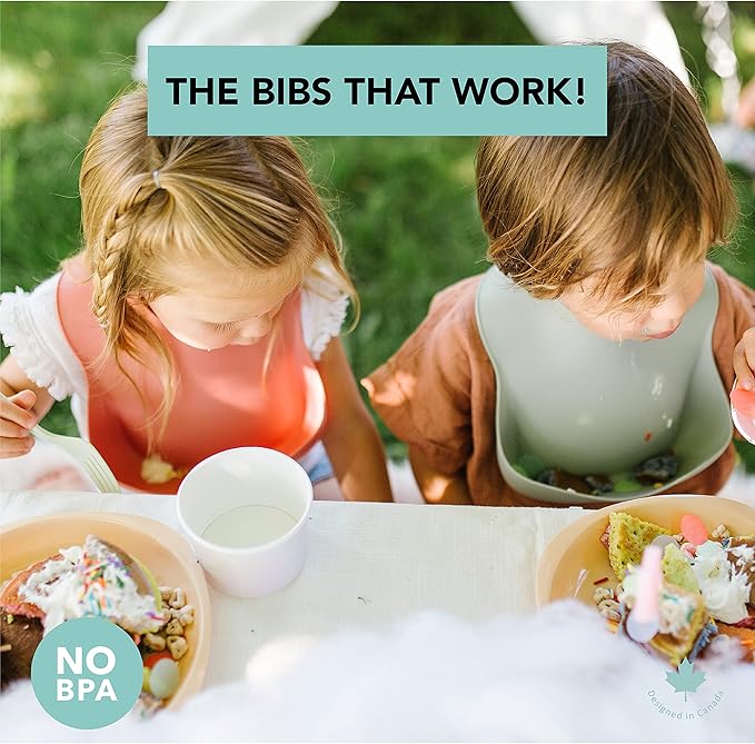 • TRAVEL FRIENDLY AND ADJUSTABLE FIT - Our flexible silicone bib is simple to roll up and pack for on the go! Plus reinforced, durable buttonholes adjust to fit your growing baby, ages 3 - 36 months.