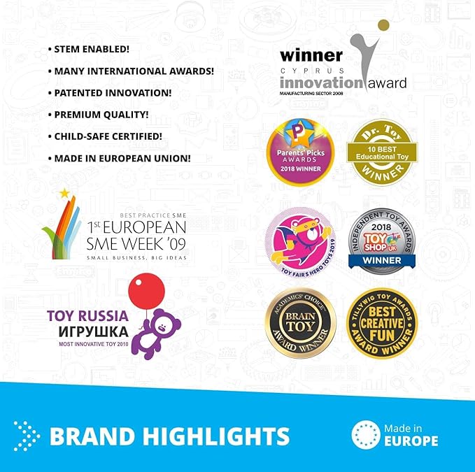 • MADE IN EUROPE: Award-winning engineering toys featuring best-selling models. Watch your child beam with pride while developing creative thinking and engineering skills through proven educational designs.