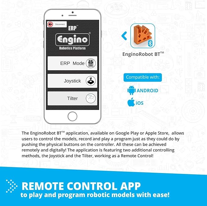 • AWARD-WINNING BLUETOOTH CONTROLLER: Professional-grade ERP controller with 2 IR sensors, 2 motors, and smartphone app connectivity. Kids program robots via buttons OR mobile remote control!