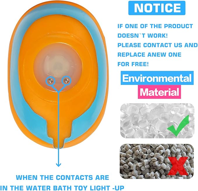 • The light up bathtub toys are made of rubber that will float on water, there are 2 Sensors at the bottom, it will light up auto when put it on water, ideal gifts for baby playing in the bath room.