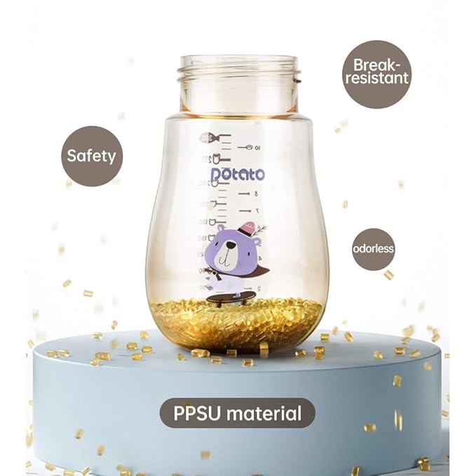 • PPSU material: This product is made of PPSU. The color of PPSU is light yellow and has the characteristics of BPA free, strong molecular stability and high temperature resistance. Compared with the bottle made of PP, the PPSU baby bottle is more sturdy, will not be broken after several falls, and can withstand repeated high temperature sterilization for a long time.
