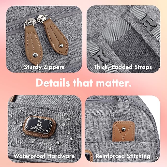 • Pacifier Case & Portable Changing Pad: The removable pacifier pod can hold two pacifiers to keep them readily available and clean. The D-shaped ring allows you to quickly and easily install the pacifier holder or other essentials like Hand sanitizer, diaper bag dispenser, small accessories, etc. Also comes with a travel changing mat with diaper pocket & wipes pocket as well as a mom’s pockets with a wrist strap for quick, on-the-go changes.