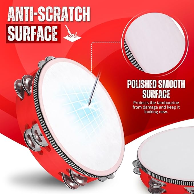 Flexzion Wood Handheld Tambourine (2 Pack) 8 Inch Double Row 12 Pair Jingles, Hand Held Percussion Drum Moon Musical Instrument with Metal Bell