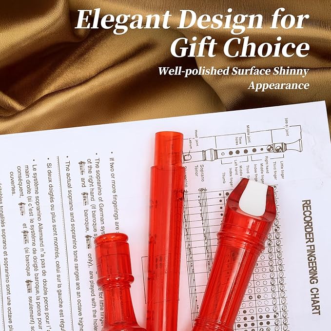 • ♫ Package Contents -- Exquisite packing bag,Soprano Recorder,Fingering Chart, Cleaning Rod, Small wipe.Ours recorder is packed in a storage bag,convenient to carry around it, such as music classes, camping trips, road trips, etc.
