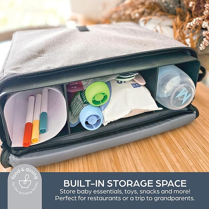 • π‚π¨π§π―πžπ§π’πžπ§πœπž 𝐅𝐨𝐫 𝐏𝐚𝐫𝐞𝐧𝐭𝐬: This isn't just a booster seat for the dining table. Featuring a carry strap, it quickly and easily can be thrown over your shoulder for on the go adventures & the built-in storage gives you plenty of space to store the necessesities. Dine with confidence knowing you have a dependable high chair solution no matter where you are.