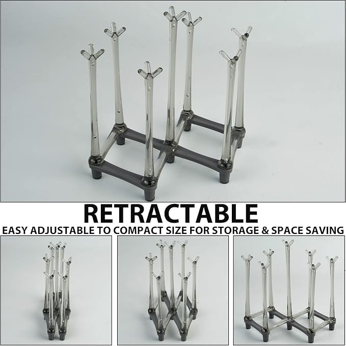 • Unique Retractable Design: The foldable cup drying rack can be easily adjusted to fit cups, mugs or bottles of different sizes, to meet different demands of using. When fully folded, the size is only about 19.5 x 17 x 5 cm (7.68 x 6.69 x 1.97 inch), very easy to store when not in use.