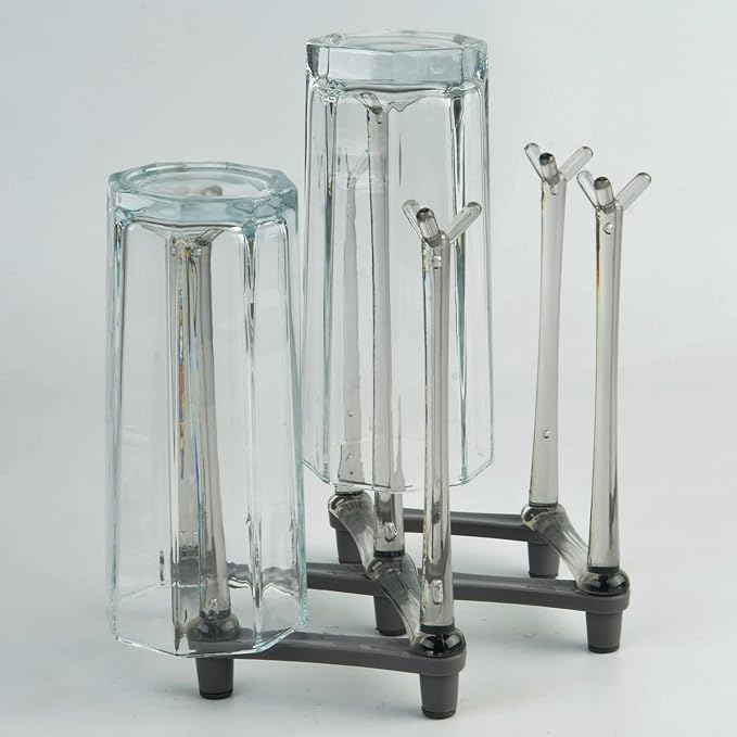 2 Pcs Cup Drying Racks Set, Retractable Drinking Glass & Baby Bottle Drainer Stand, PP Material Mug Draining Organizer, Kitchen Countertop Dishes Holder, Gray
