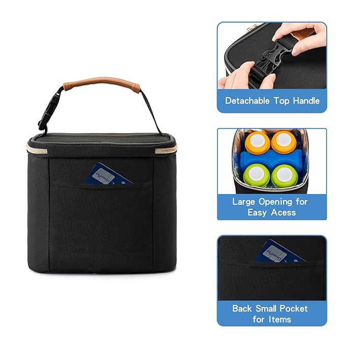 Insulated Bottle Bag with Ice Pack Fits 4 Large Baby Bottles Up to 5 Ounce, Cooler Bag Great for Nursing Mom Daycare-Black