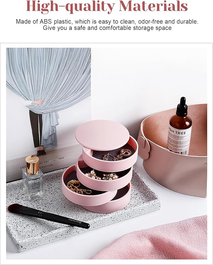 • ♥【High Quality Materials】- Made of premium ABS plastic, non-toxic, odor-free and durable. Internal soft non-woven fabric for preventing scratch and tarnish, give you a safe storage space to protect the jewelry.