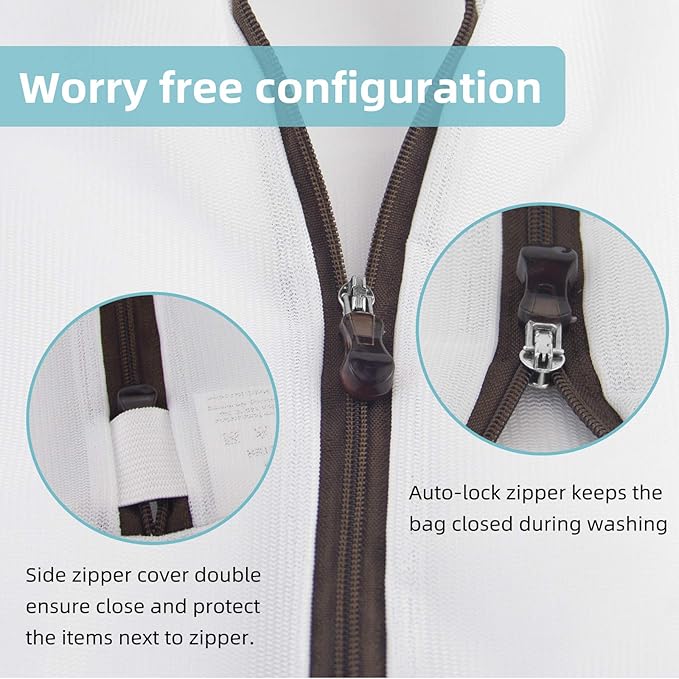 • Our upgrade anti-rust zipper with auto lock and side zipper protection band will prevent the bag from opening during washing and drying cycle. You’ll have a new quiet and a snag-free laundry experience