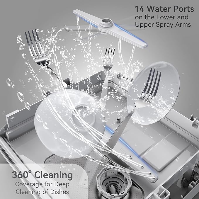 • 【FIVE WASHING PROGRAMS】Countertop Dishwasher with water tank perfectly provides 5 washing programs: Standard Cleaning, Fast Cleaning, ECO Cleaning, Strong Cleaning and Fruit Cleaning. Dual high water pressure spraying arms give dishes that streak-free deep cleaning.