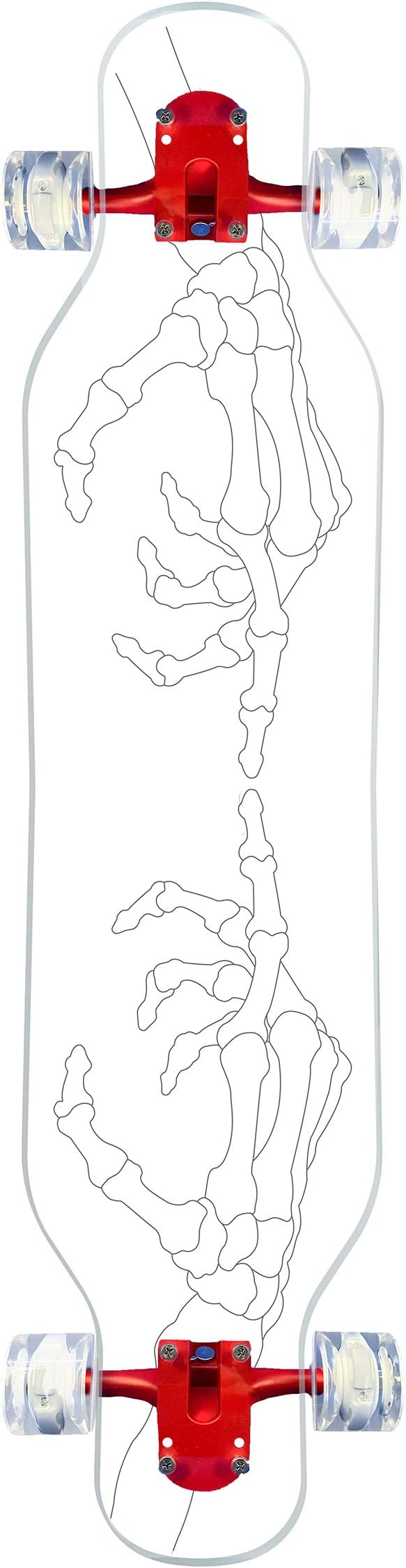 • Easy Maintenance Ride: This longboard requires minimal upkeep-simply rinse with water or polish with a board-safe cleaner to retain its clarity. Its durable body holds up well under everyday use, making it a reliable piece for both short and long sessions. Riders looking for alternative styles like clear skateboard or advanced lighting like skateboards with light-up wheels, will appreciate its long-lasting design.