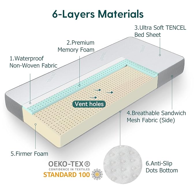 • 【STANDARD SIZE CRIB MATTRESS】Baby mattress dimensions are 52" x 27.5" x 4.7". Fits full-size cribs and toddler beds