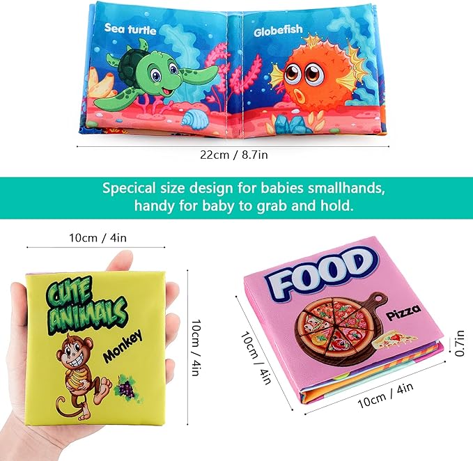 • ❤ [INTERESTING CLOTH BOOK DESIGN] Size: 4*4 inch baby picture book, textured fabrics and bright colors help to cultivate children's sensory perception, full of interactive elements, your baby's attention will be more durable, very suitable for infants and toddlers make the colorful photos and like soft sides. The soft cloth book feels extremely soft and is easy for small hands to hold.