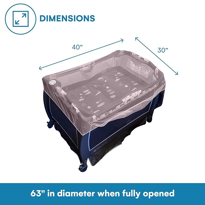 • Universal Fit: Measuring 40 x 30 x 63 inches, this baby mosquito net stretches to fit most strollers, cribs, and playards; secure elastic edging provides a snug and reliable fit