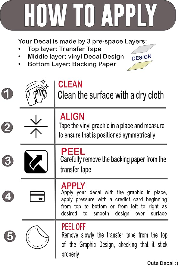 • EASY INSTALLATION - DYI product, precut with precision HD cutting equipment just peel and stick, apply slowly to a flat surface. Simply clean your surface, ensuring it's oil-free, peel off the sticker, and slowly apply it using our transfer film. Hassle-free installation for a flawless finish.