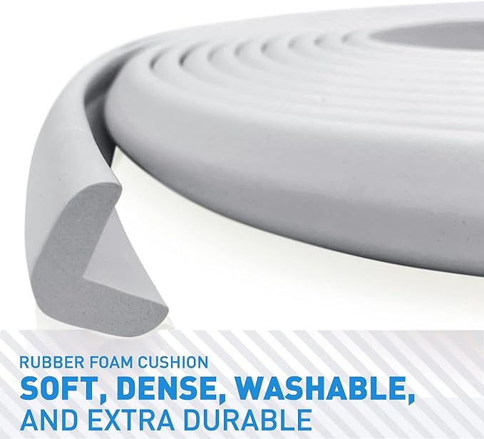 Baby Proof Corners 20.4ft and Edges with Furniture Corner & Edge Safety Bumpers, Impact-Absorbent 18ft Bumper & 8 Foam Corner Protectors, Thick, Odorless Table Edge Protectors for Baby | Grey