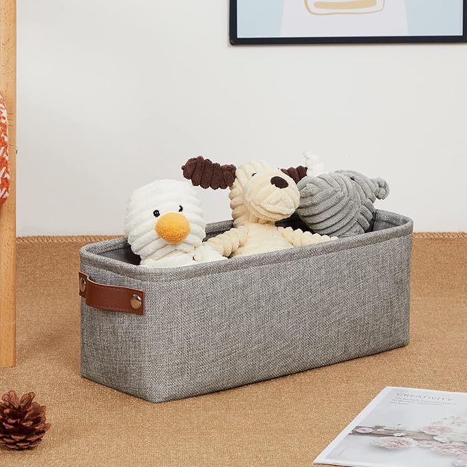 • 【Unique Design & Modern & Decorative】Set of 2 small toilet paper baskets, dimensions(each): 15(L) x 6(W) x 5.5(H) inches. Fabric storage baskets bring you organizing convenience and a sweet home. Great for socks, underwear, books, magazines, toys, pet products, wipes, towels, decorations, office supplies, DVDs, and gifts. The fabric baskets with neutral colors can match a lot of home styles - keeping your home nice and tidy.