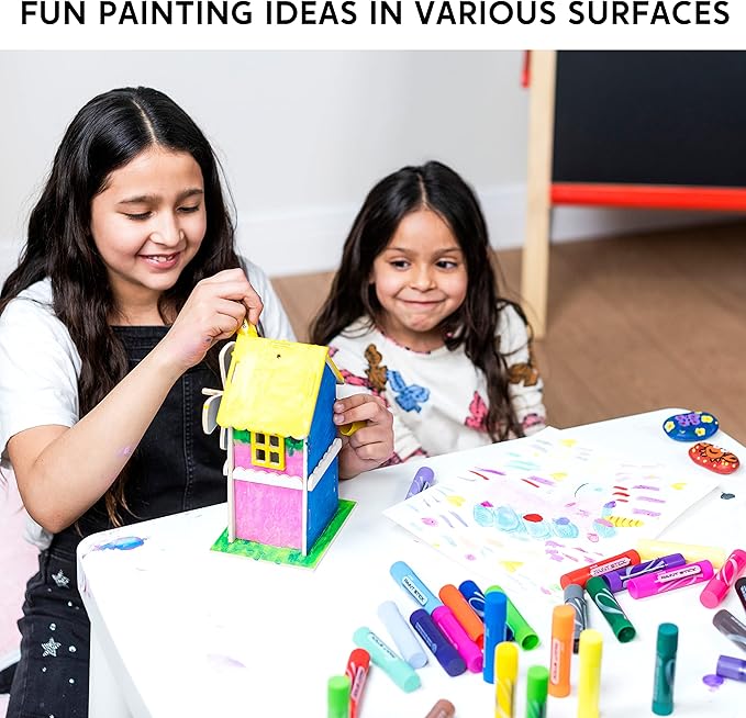 • FUN PAINTING IDEAS INCLUDE: Our tempera paint sticks for kids are great for wood painting, chalkboard, and canvas. This sticks paint can be used for a variety of techniques like elbow and finger painting to explore creativity!
