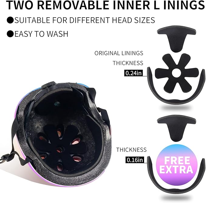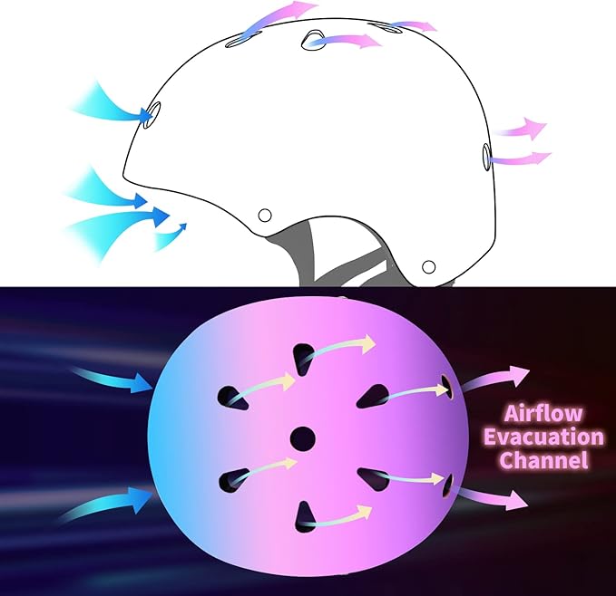 Adjustable Color Gradient Skateboard Helmet for 3-5-8-14+Ages【Toddler Kids Youth Adult】 Girls Boys Woman.Bike Helmet for Multi-Sports Cycling Bicycle Scooter Inline Roller Skate Rollerblading
